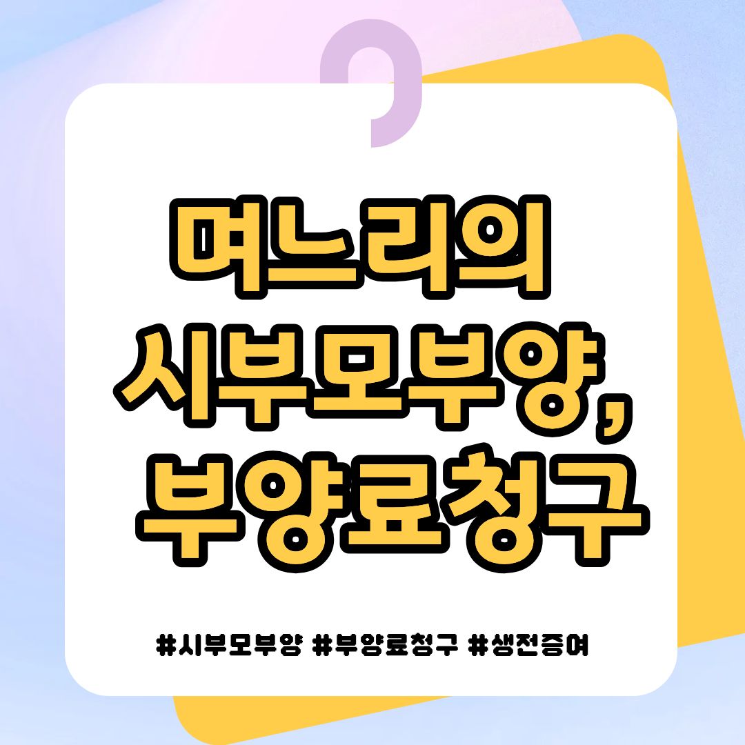 현재는 사연자의 경우 남편이 살아있고 혼인관계가 유지되고 있기 때문에 시아버지에 대한 부양의무가 있습니다. 그렇다면 시아버지를 돌보면서 써야하는 부양의 비용은 남편에게 요구할 수 있을까요?