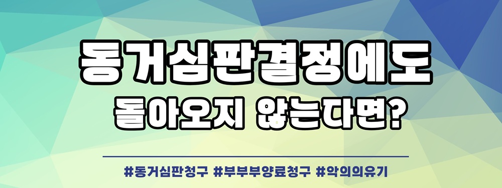 법원에 동거심판을 청구하면, 구체적으로 어떤 기준들을 중요하게 따져볼까요? 동거심판청구는 말 그대로 일방이 상대방과 동거하기를 원하지 않음에도 이를 강제하는 부분이 있어요. 공동생활을 유지함으로써 예상되는 부부간 신뢰관계의 회복 가능성 및 그 정도. 동거를 명함으로써 동거를 원하지 않는 인격권과 행복추구권이 제한받는 정도 를 비교, 형량하여 정하게 된다는 점 말씀드립니다!