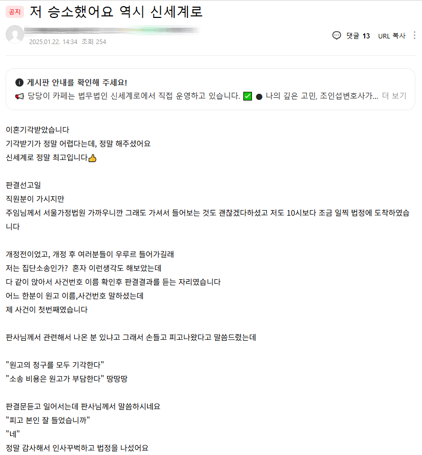 이혼기각 판결 받아낸 의뢰인의 기쁜 감사인사