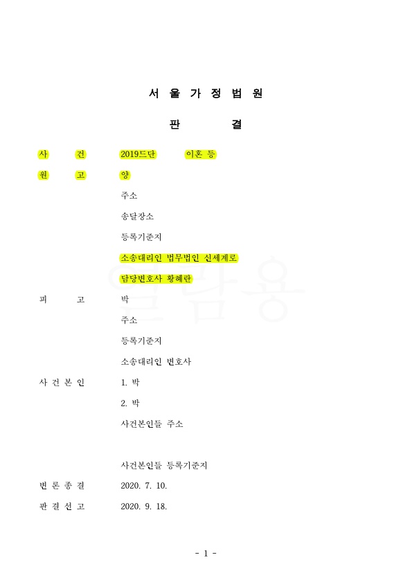 결국 이혼소송을 하기 위해 신세계로를 찾아주셨습니다.