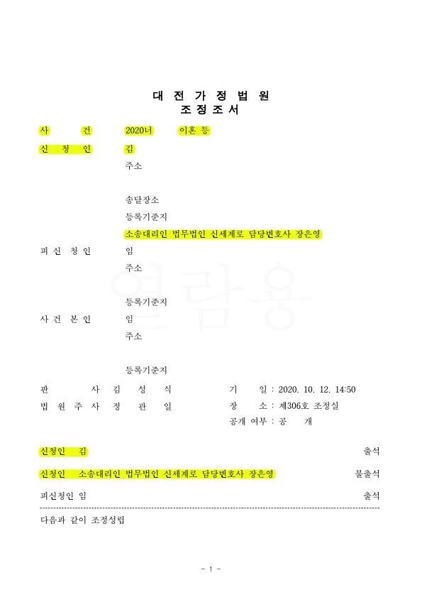 배우자의 과도한 부채, 채무제외하고 재산분할 50% 인정받고 조정성립