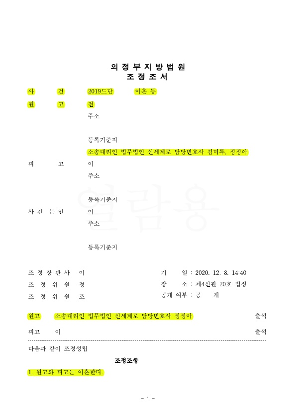 결국 이혼을 위해 저희 신세계로를 찾아오셨습니다​.