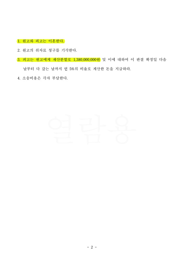 가장 큰 쟁점이 되었던 재산분할에 대해서는